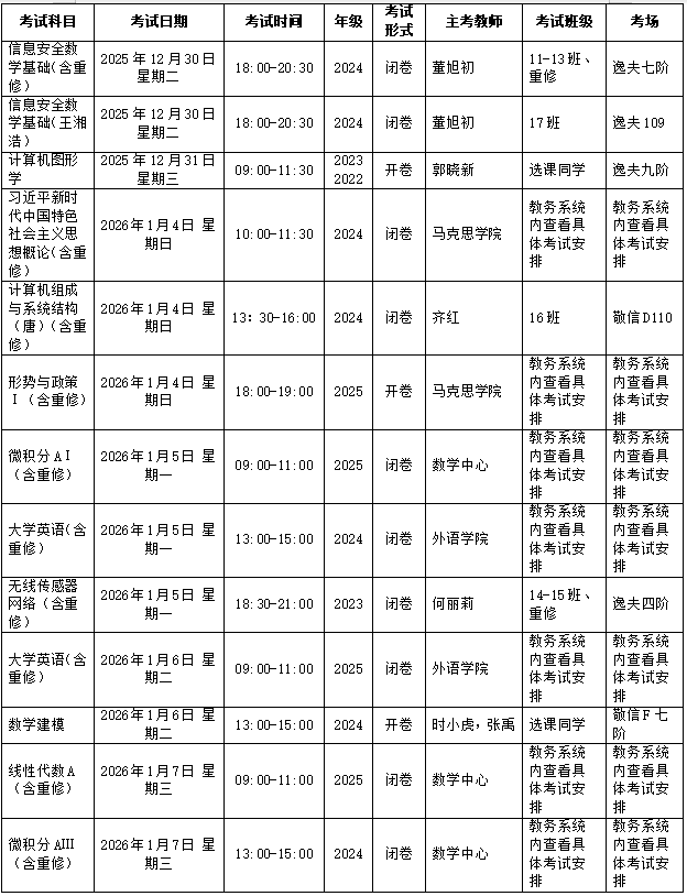 公共课的考试安排以学校通知及教务系统为准,请同学们及时查看(//iedu.haijiaoxz.net/)。