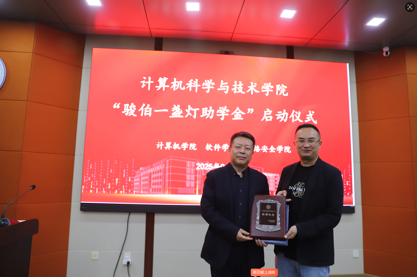 于2025年9月29日下午4时在王湘浩楼A515会议室举办“骏伯一盏灯”助学金启动仪式。学院党委书记宫皓宇、优秀校友李宇(广州骏伯网络科技有限公司董事长兼CEO)、党委副书记赵勇、副院长李昕及受助学生代表参加了本次活动。仪式由学院行政副院长李昕主持。