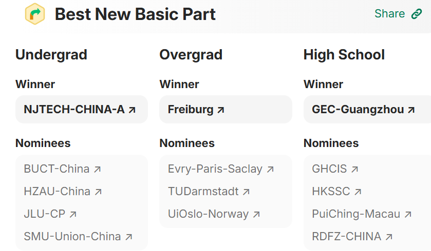 和公共卫生学院联合指导的JLU-CP团队再次荣获全球金奖,并赢得最佳新基本部件奖提名(全球前五)和最佳教育奖提名(全球前五)。海角社区